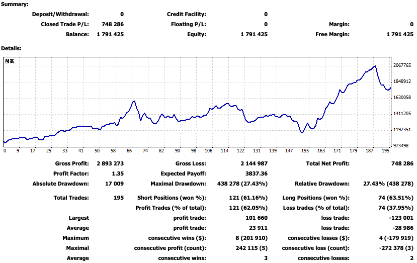 以下にフォワードの結果を掲載します。含み損があいにく計測できておらず、ロスカットはしていませんでしたが60%強くらいまではいった日があったかと思います。