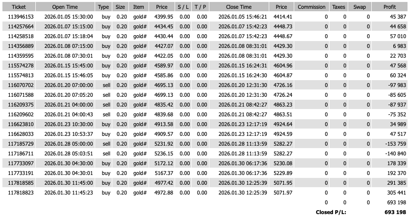 2026年1月の禁断手法EAの結果です。